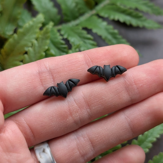 Handmade Bat Studs, Small Polymer Clay Earrings with Stainless Steel Posts
