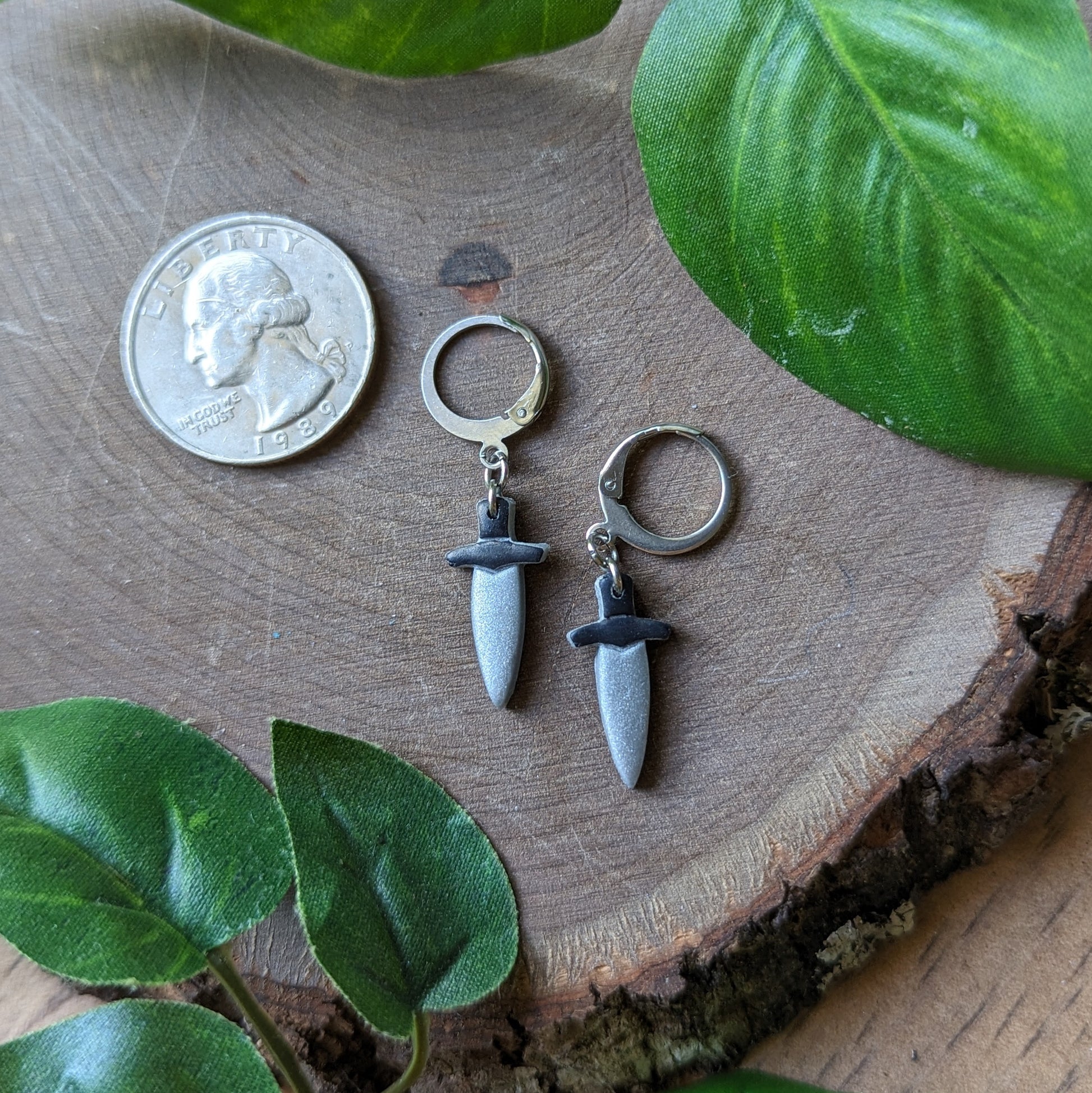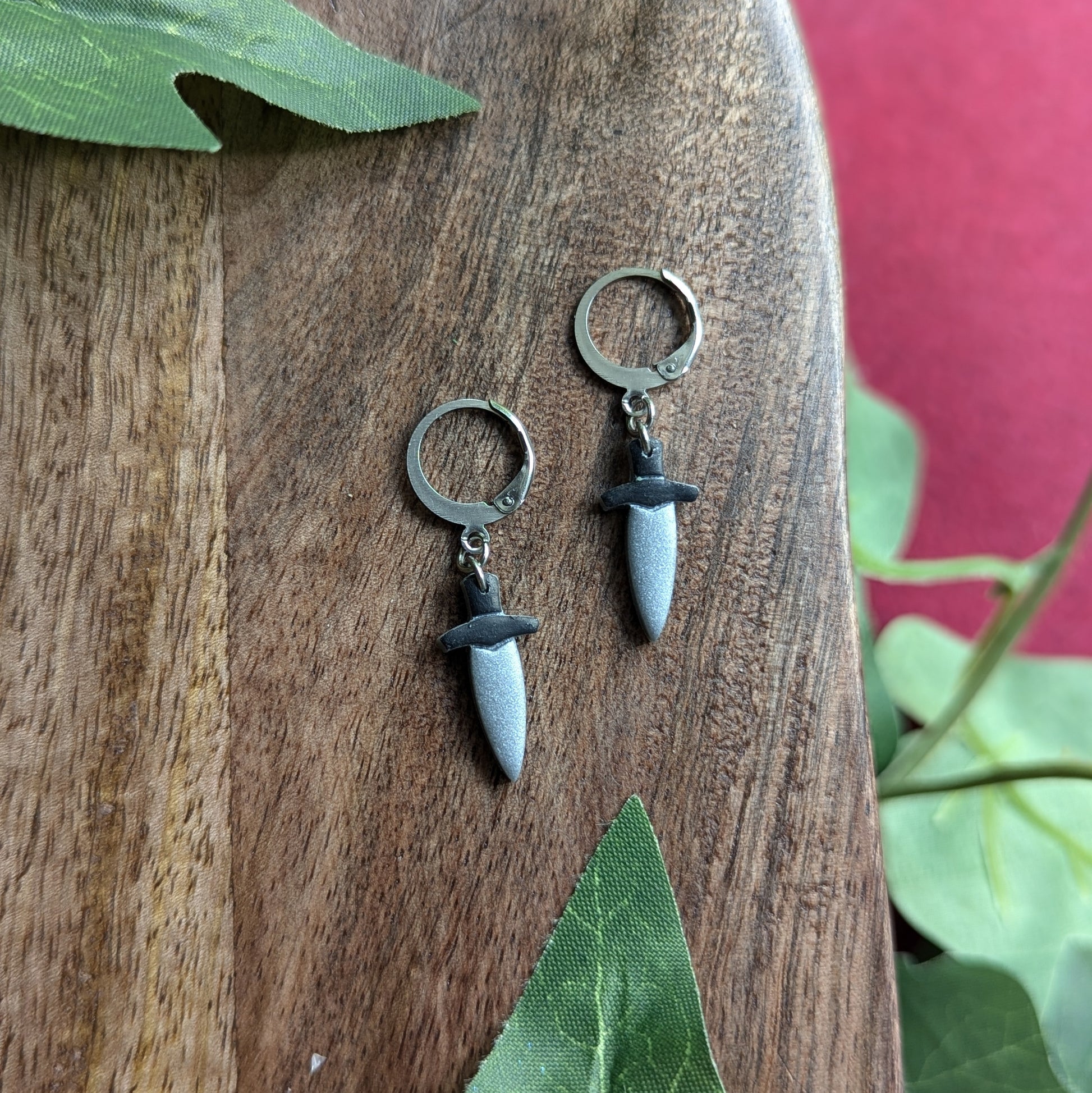 Silver Dagger Dangle Earrings